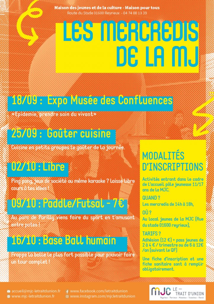 𝐋𝐄𝐒 𝐌𝐄𝐑𝐂𝐑𝐄𝐃𝐈𝐒 𝐃𝐄 𝐋𝐀 𝐌𝐉 Le pôle Jeunesse revient dès ce début de saison avec le nouveau programme des mercredis