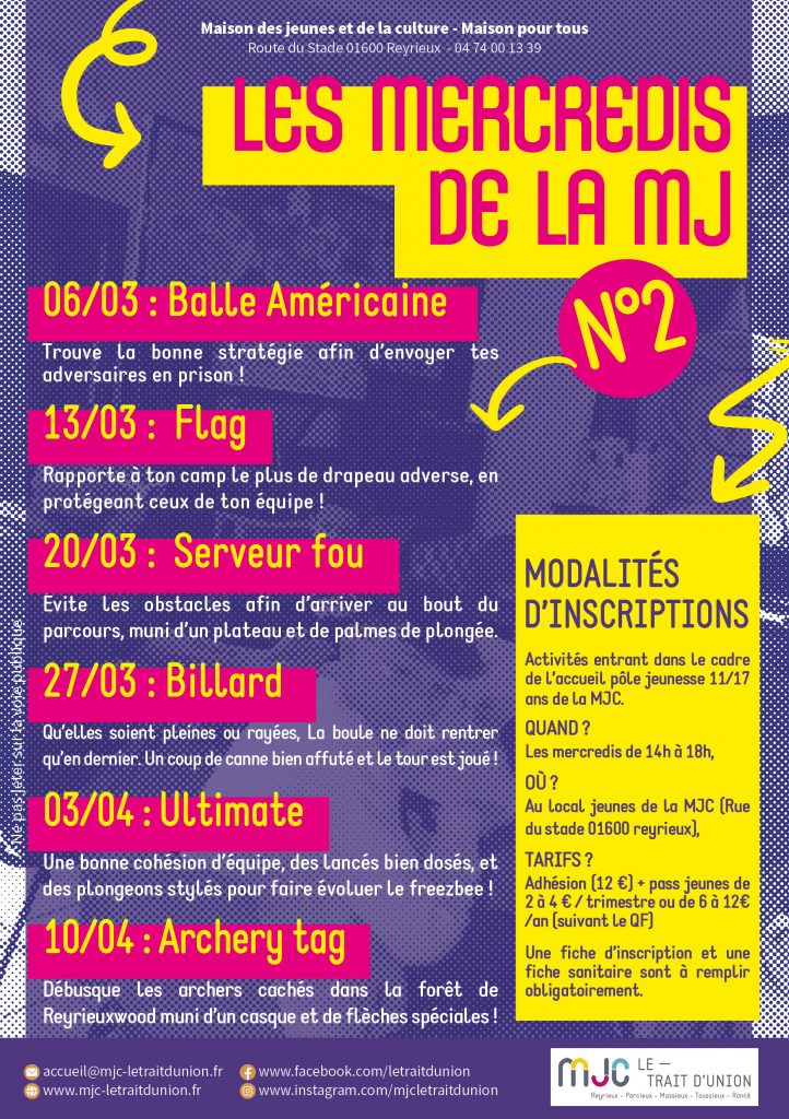 Découvrez le programme des Mercredis de la MJ, concocté par le secteur jeune de la MJC !