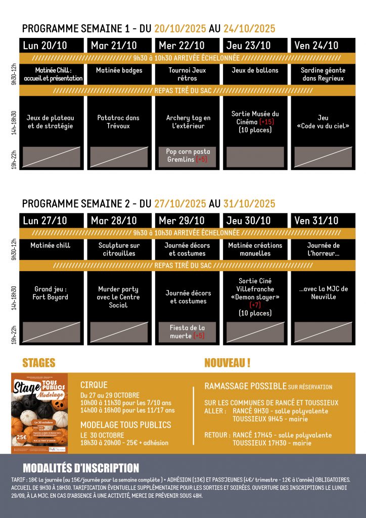 PôLE JEUNESSE : Programme des vacances d’octobre !