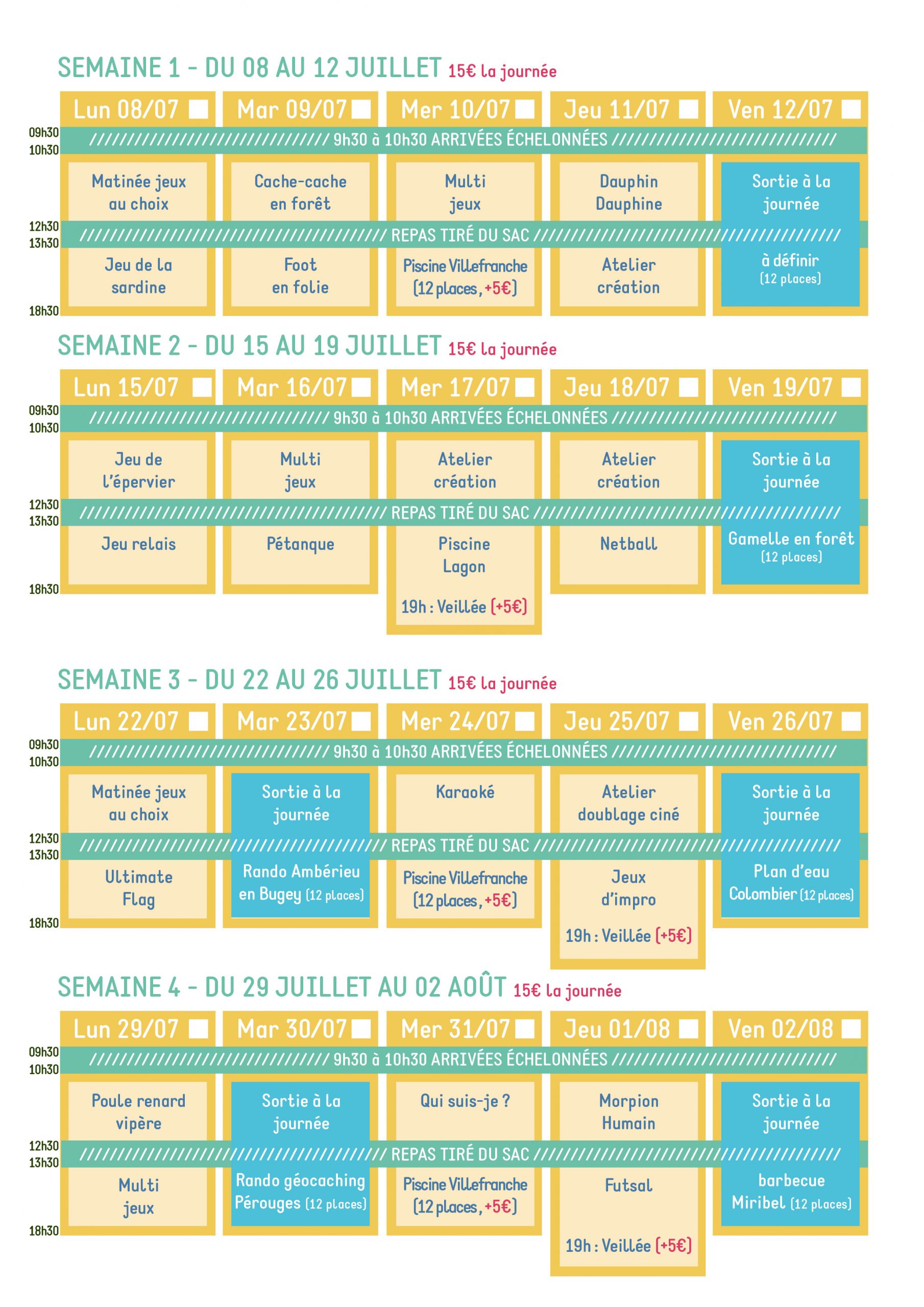 ACCUEIL DE 9H30 À 18H30 + ADHÉSION ET PASS’JEUNES OBLIGATOIRES.