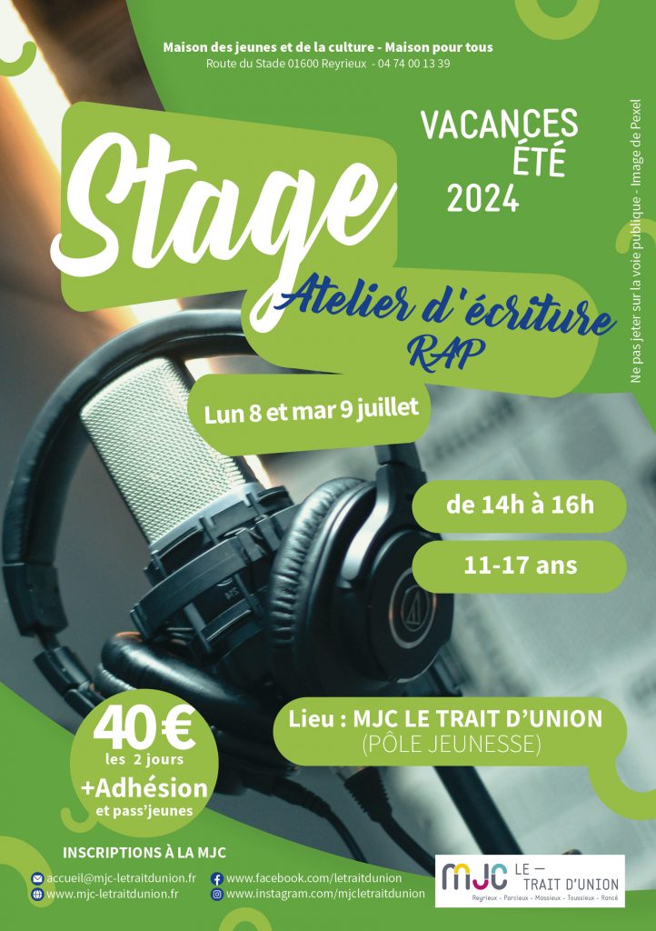 ECRITURE RAP : les 8 et 9 juillet de 14h à 16h (pôle jeunesse)