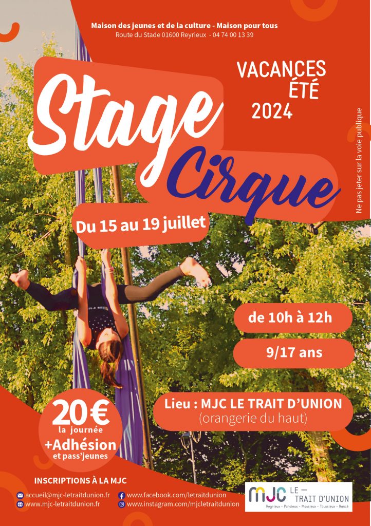 CIRQUE : du 15 au 19 juillet de 10h à 12h (orangerie du haut)